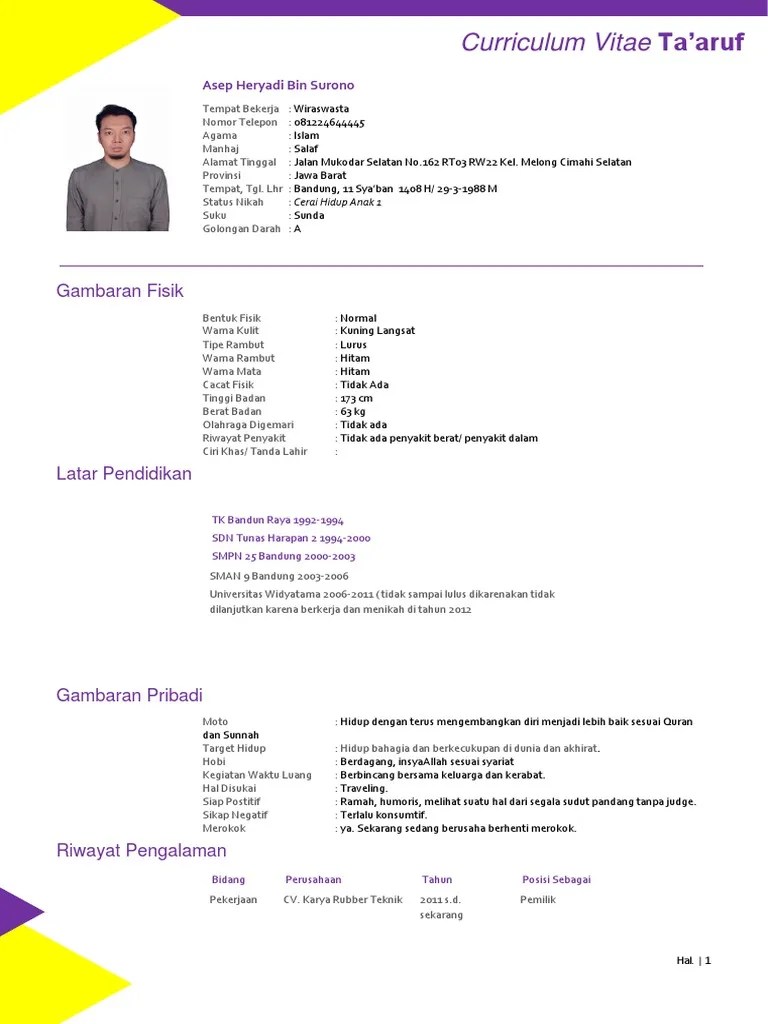 Untuk akhwat, gunakanlah busana yang menutup aurat dengan warna pakaian muslimah yang anda sukai. Biodata ta'aruf data pribadi nama lengkap* : Copy paste lalu edit sesuai diri kamu. Selain itu, karena proposal taaruf tidak hanya sekedar untuk. Contoh cv taaruf sesuai sunnah.